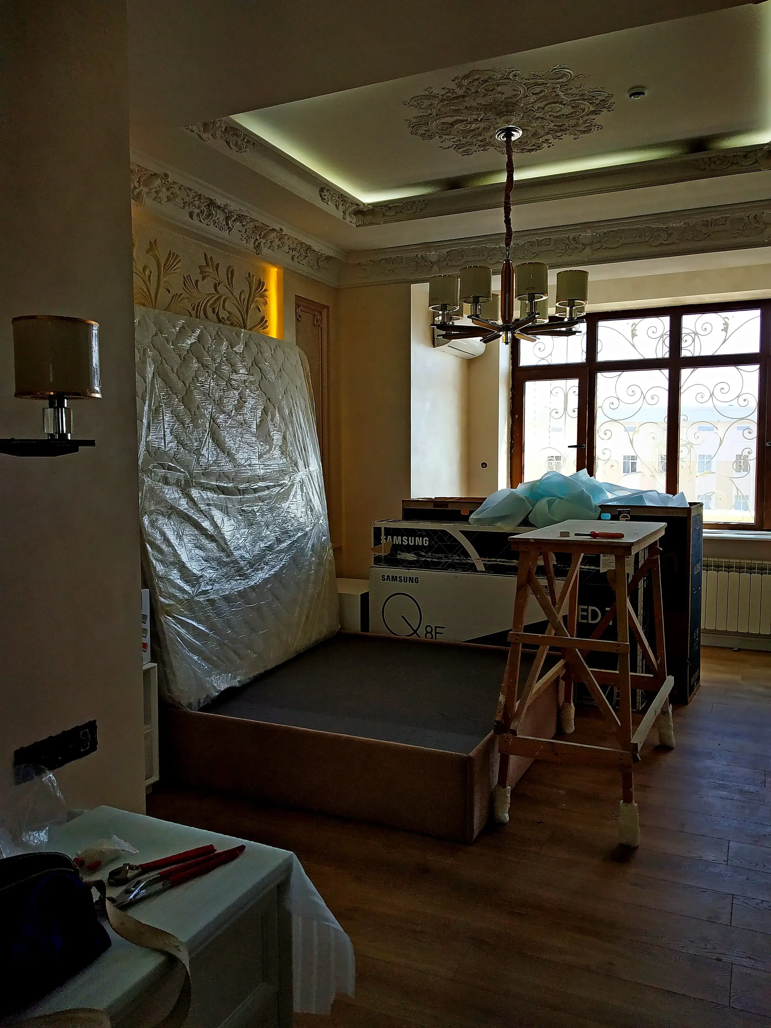 Наша команда предоставляет надёжную, аккуратную установку люстр к потолку из ГКЛ или напрямую к плите перекрытия, для каждой люстры используется индивидуальный подход к крепежам и установке.
